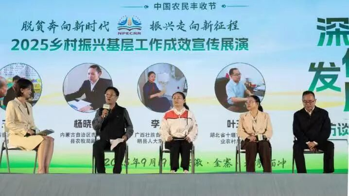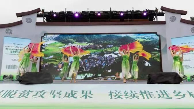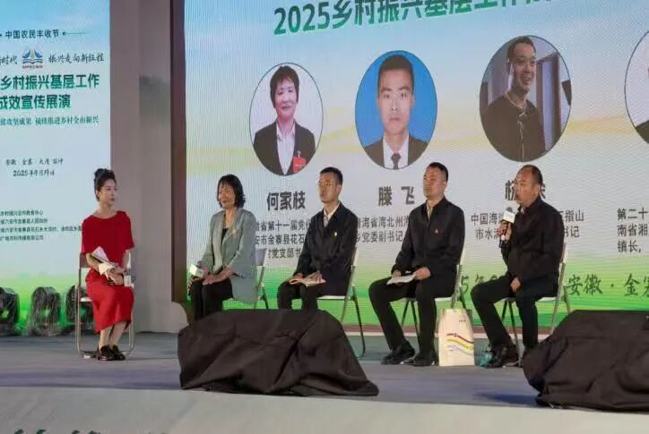 第二板块为现场展演,围绕“监测帮扶”“巩固成果”“深化发展”“协作帮扶”“接续振兴”五个核心章节依次展开。各章节以“成果发布+案例展示+经验分享+访谈交流”的形式,既客观呈现基层实践成果,又深入解读其背后的逻辑与方法。活动中还穿插了富有乡土特色的文艺演出,将丰收的喜悦与振兴的豪情融为一体,营造出“庆丰收、促振兴”的浓厚氛围。在“接续振兴”环节,县农业农村局党组书记、局长张乔以“牢记嘱托再出发,红色沃土谱新篇”为题,分享了我县乡村振兴的实践路径;花石乡大湾村党支部书记何家枝结合一线工作经历,生动讲述了大湾村从脱贫攻坚到乡村振兴的蝶变故事。