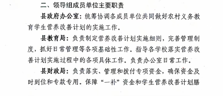 【组织机构与职责】金寨县农村义务教育学生营养改善计划组织机构和职责