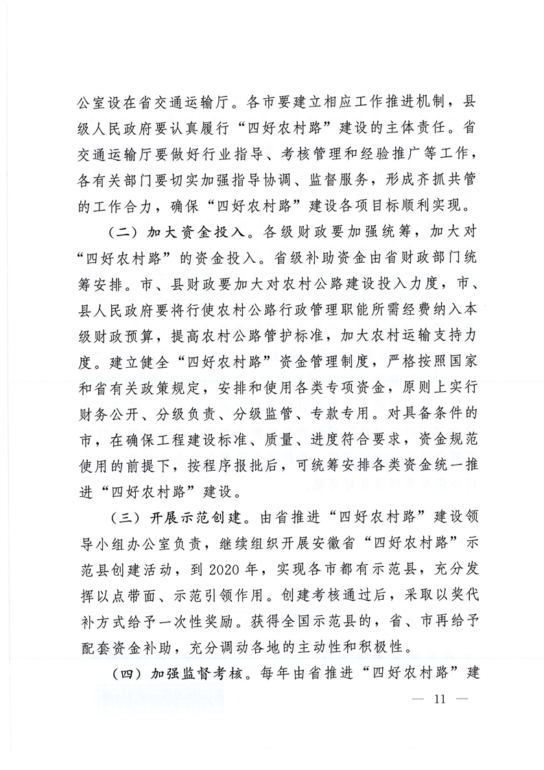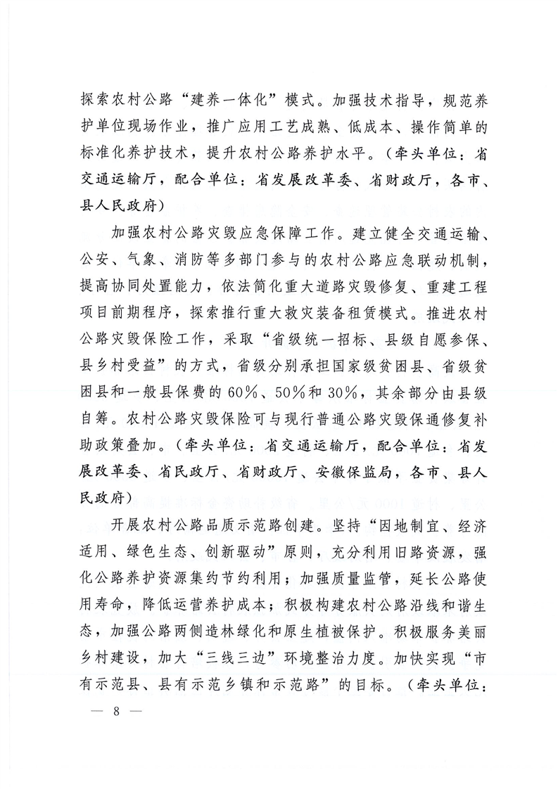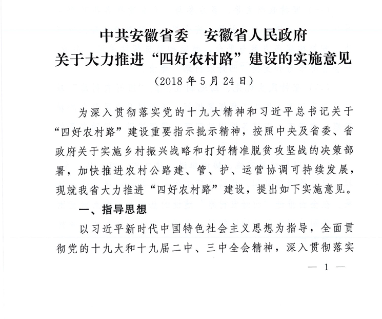 【补助政策】中共安徽省委 安徽省人民政府关于大力推进“四好农村路”建设的实施意见(2026年继续有效)