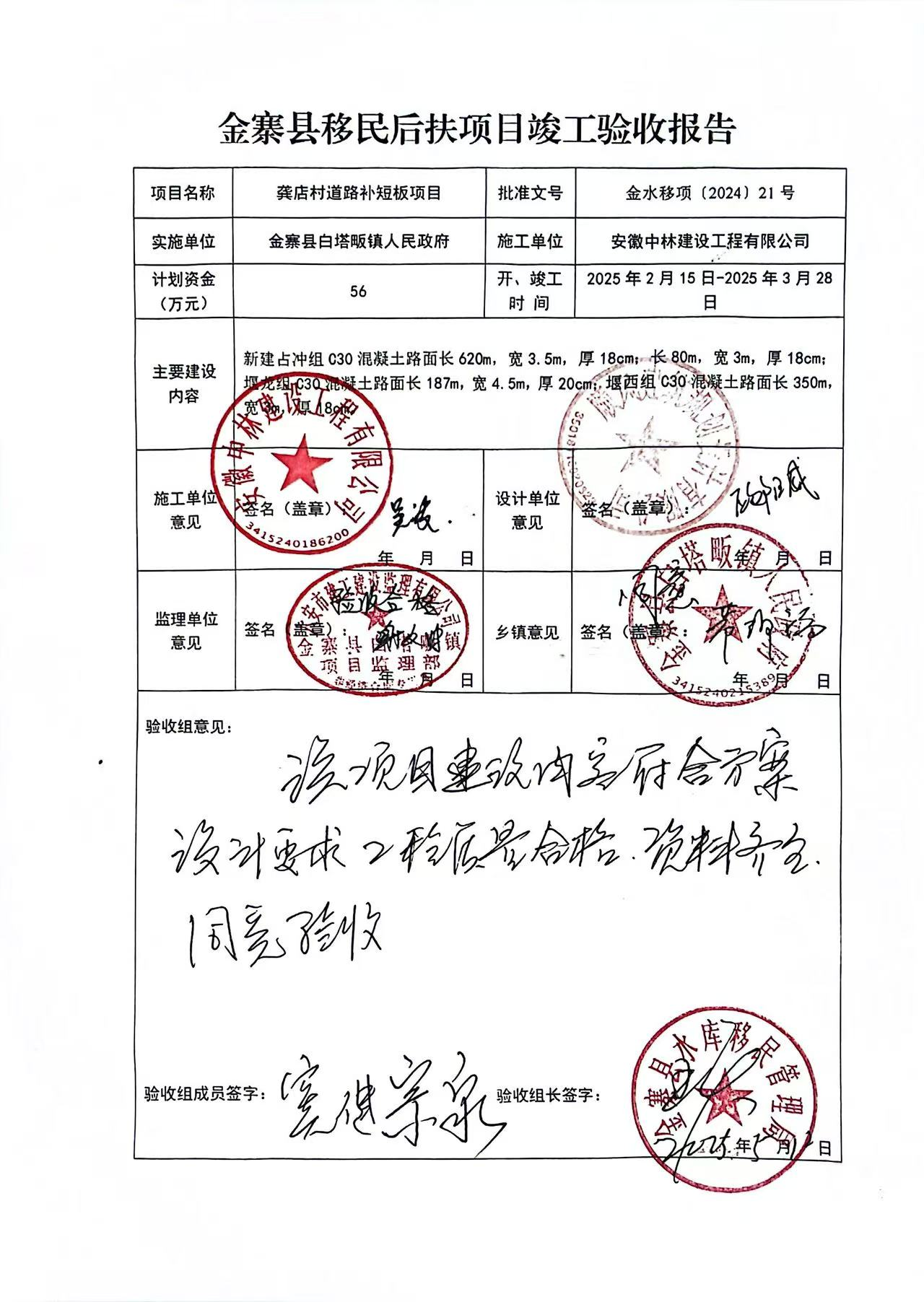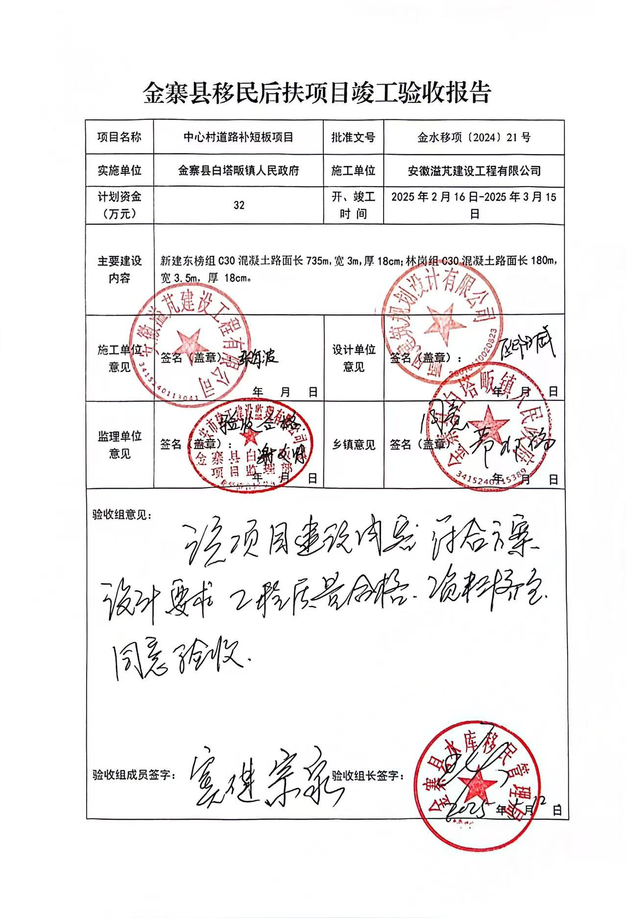 【验收信息】白塔畈镇2025年农村公路建设验收信息