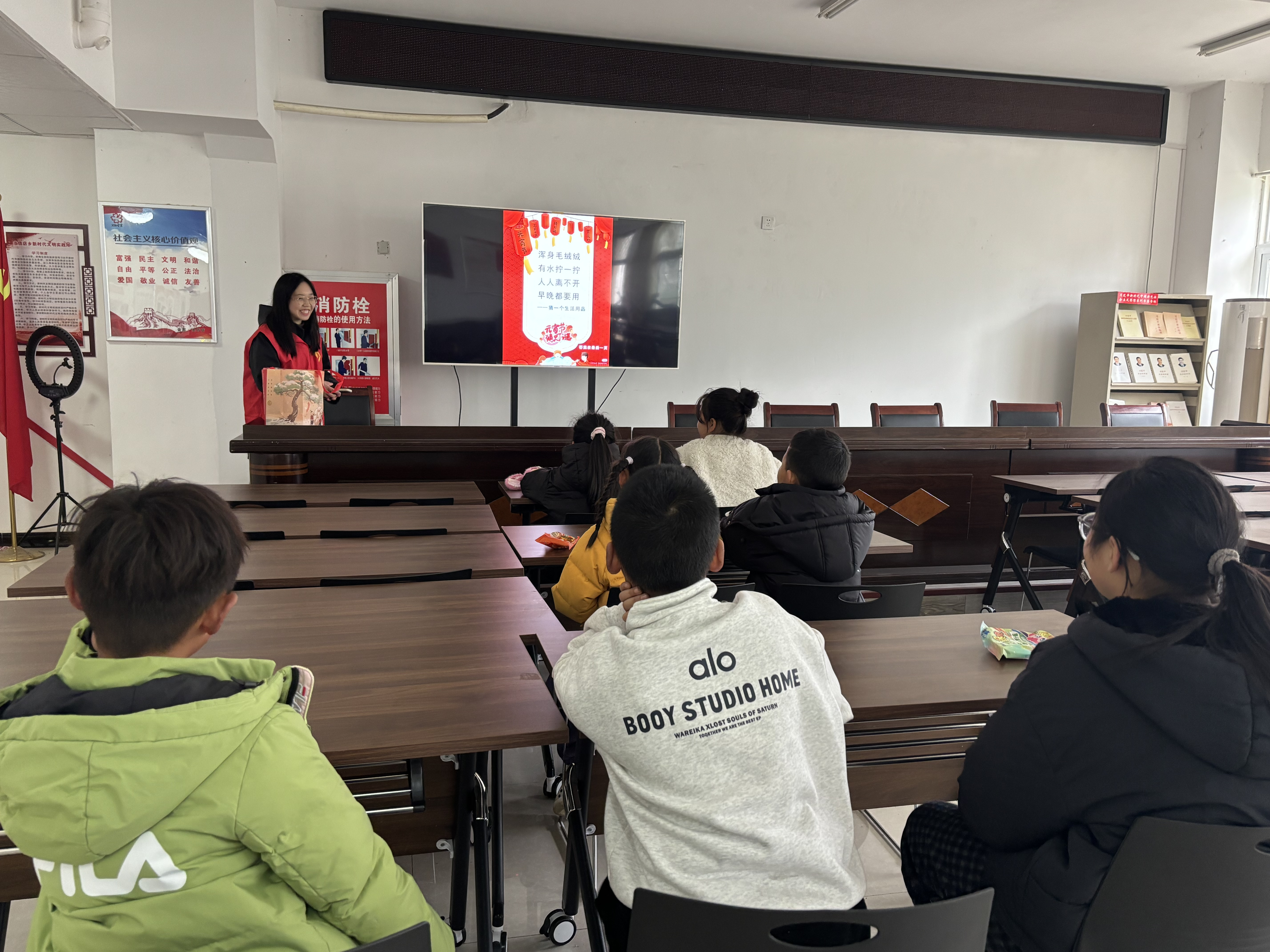 童趣传承,灯谜启智慧。下午,一场趣味十足的“猜灯谜”活动吸引了辖区众多小朋友前来参与。志愿者在屏幕上展示着丰富多样谜面内容,既有“羊下有大人”之类的猜字谜,考验孩子们的文字联想能力;也有“耳朵长,尾巴短,红眼睛,白毛衫”之类的动物谜语,生动形象;还有“有面没有口,有脚没有手”之类的日常用品谜题,贴近生活。孩子们三五成群,或驻足凝思,或热烈讨论,现场欢声笑语不断。活动采取“猜对有奖”的方式,每猜对一个谜底,就可以兑换一份小零食作为奖励。拿到奖品的小朋友兴奋不已,迫不及待地与同伴分享。整个下午,文化站里充满了孩子们的欢笑声和欢呼声,大家在轻松愉快的氛围中感受着传统文化的魅力。