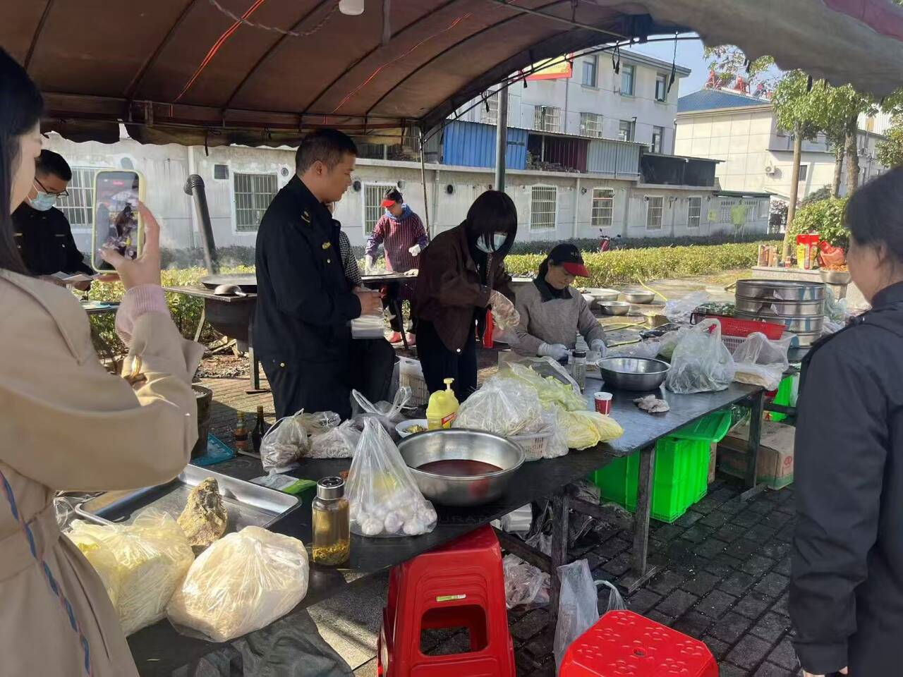 现场检查“全链条”,于细微处堵漏洞。联合检查组秉持“不漏一环、不疏一处”的原则,深入村组,对正在举办的数场农家宴席进行了“从头到尾”的沉浸式检查。检查内容全面覆盖“人、物、环”三大关键:在“人”的方面,不仅核验了主办厨师及所有帮厨人员的有效健康证明,还现场询问了其食品安全知识掌握情况;在“物”的方面,重点追溯了猪肉、蔬菜、调味品等大宗食材的采购凭证与来源,严查“三无”产品及来源不明的食材;在“环”的方面,细致查看了加工场所的卫生状况、生熟食砧板与刀具的区分使用、餐饮具的清洗消毒流程、食品的冷藏贮存条件以及最终的48小时留样规范执行情况。对于检查中发现的个别帮厨人员未规范佩戴工作帽、食品原料就地存放等问题,检查人员均当场指出,并监督其立即整改,实现了检查与纠偏同步。