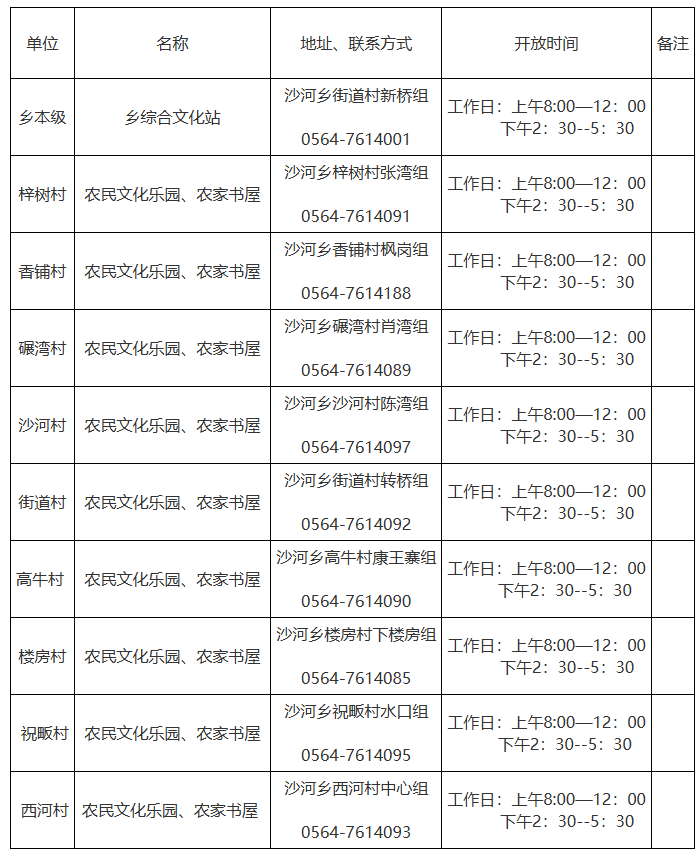 金寨县沙河乡2026年文化站名录