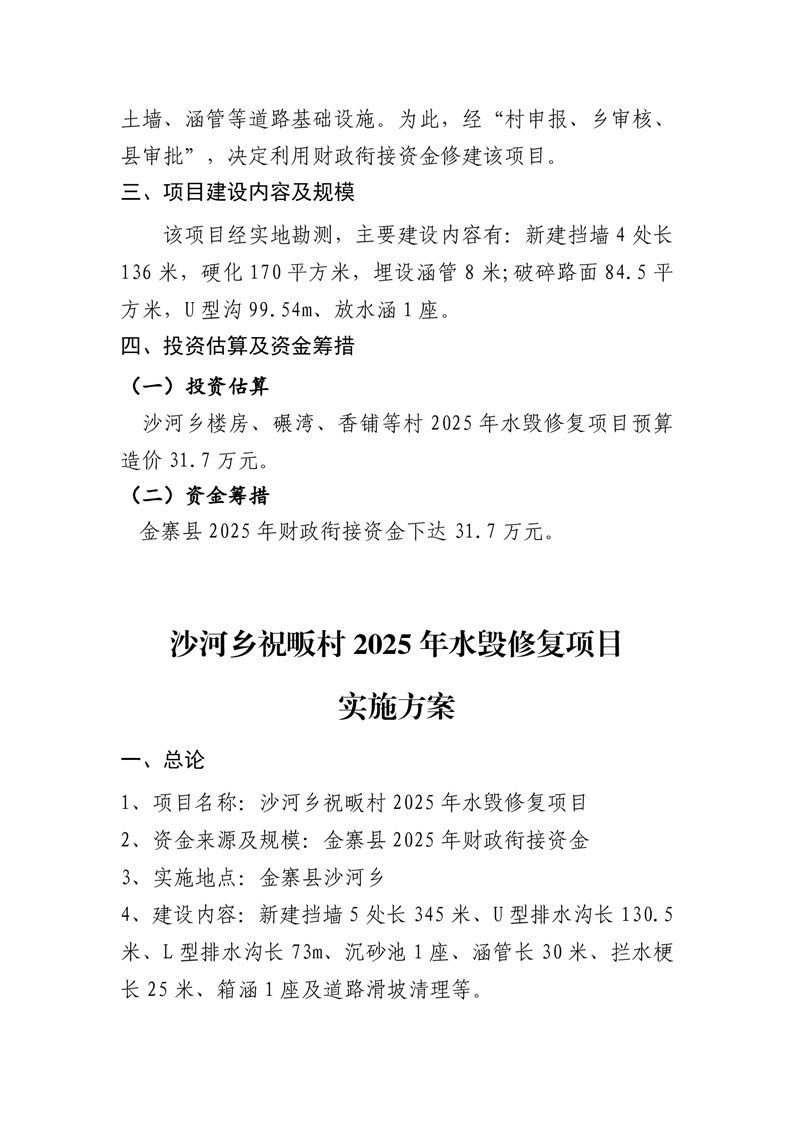 | 沙河乡2025年水毁交通项目资金计划项目实施方案公示 | ||||||