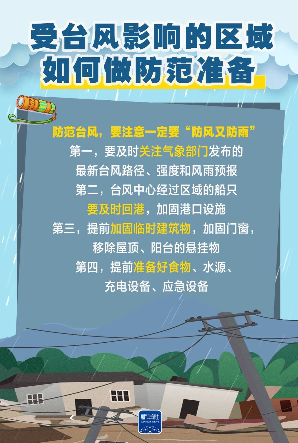 “防范台风的关键在于‘防风又防雨’。”中央气象台首席预报员徐珺介绍,首先要及时关注气象部门滚动发布的最新台风路径、强度。除了台风登陆信息,还需重点关注风雨预报。
