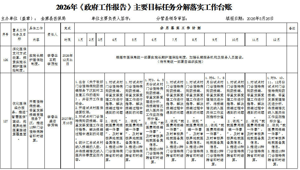 金寨县医疗保障局2026年《政府工作报告》主要目标任务分解表