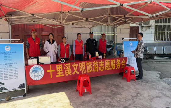 在景区入口,志愿者们设立了志愿服务台,主动向过往的游客宣传文明旅游的相关知识,为游客提供旅游信息咨询服务,包括餐饮推荐和路线规划等,并分发包括倡议书、森林防火指南以及道路交通安全手册在内的多种宣传资料,让每一位游客都能成为文明旅游的践行者。并且在路口、停车场等车流量密集区域,部署了志愿服务人员进行交通疏导,以确保交通顺畅,为游客提供更加舒心、有序的游览环境。同时在一些热门景点的服务站点,还特别安排了医生并配备了医疗箱,随时准备应对各种突发状况,确保每一位游客的安全都能得到充分的保障。