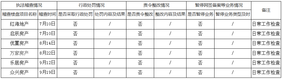 金寨县二手房备案机构市场监管及执法稽查情况一览表(2025年第三季度)