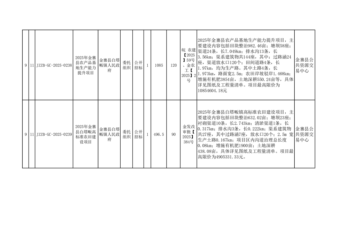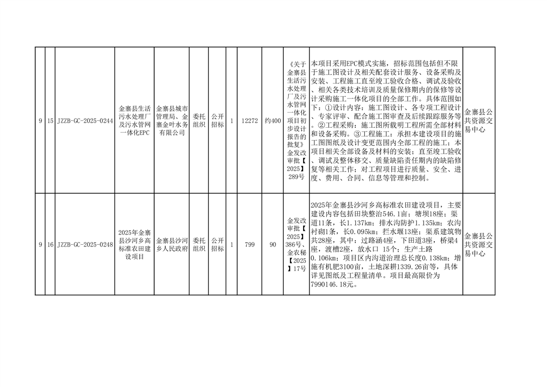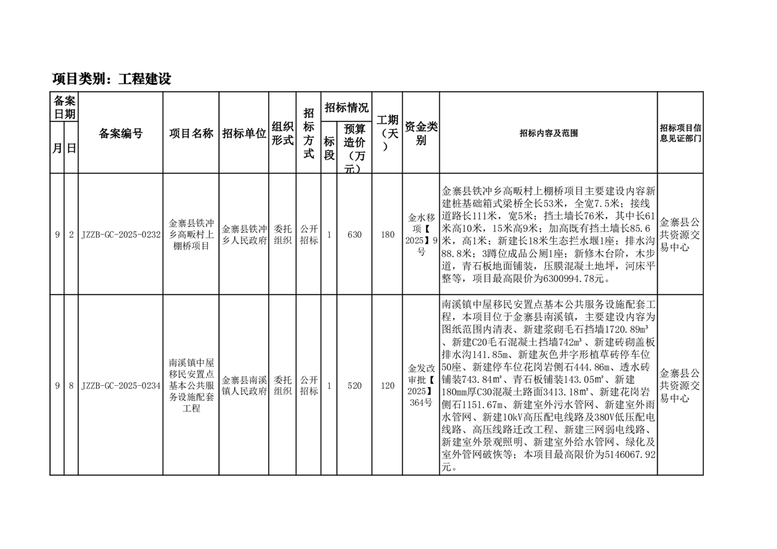 金寨县公共资源交易中心2025年9月公共资源交易备案信息一览表