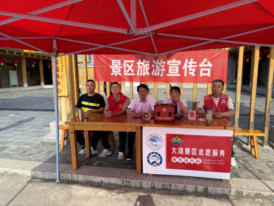 金寨县文化旅游体育局会同各景区及属地政府,在天堂寨、马鬃岭、燕子河大峡谷等核心景区及主要旅游道路沿线,科学设置了多个文明旅游志愿服务台。志愿者们身穿红马甲,坚守在志愿服务台,不仅为往来游客提供详尽的线路咨询、及时的文明劝导,还贴心准备了开水、应急药品等物资,并发放文明旅游宣传单,将暖心服务送到游客身边。