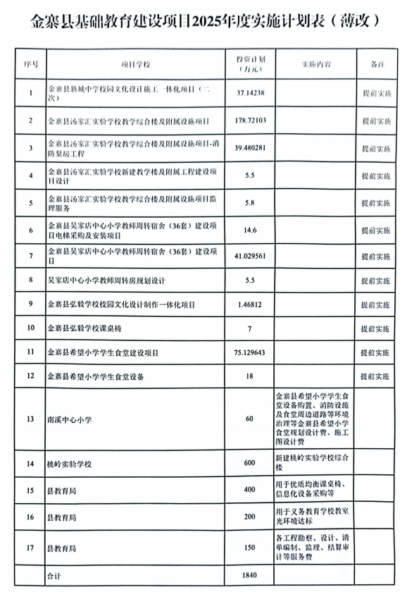 2025年金寨县校舍维修改造项目建设计划、建设进度