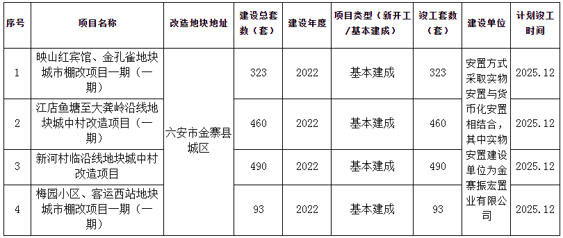 金寨县2025年棚户区改造竣工项目清单信息公开