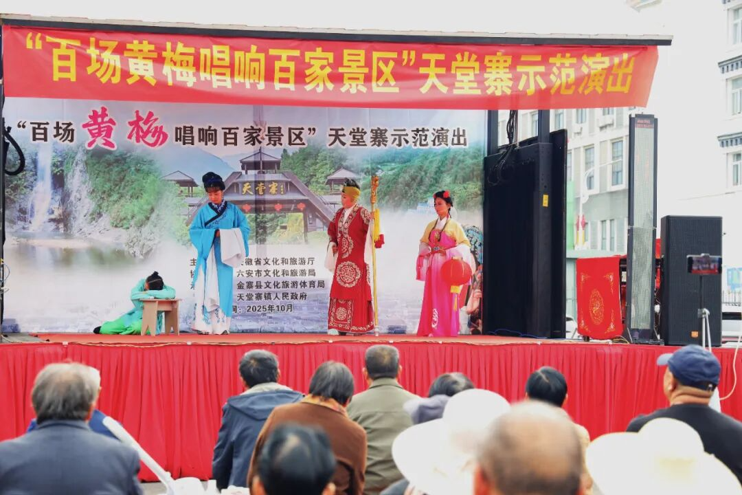 10月27日,2025年“百场黄梅唱响百家景区”示范演出在金寨县天堂寨风景区开演,国家级非遗黄梅戏与大别山风光、金寨红色底蕴相融,为游客与群众带来“戏在景中唱”的沉浸式体验。