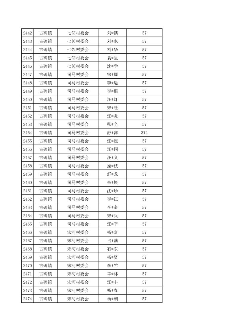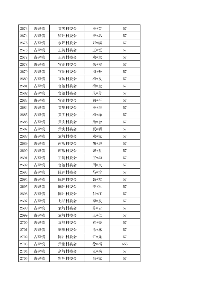 金寨县2025年12月特困人员分散供养护理补助花名册