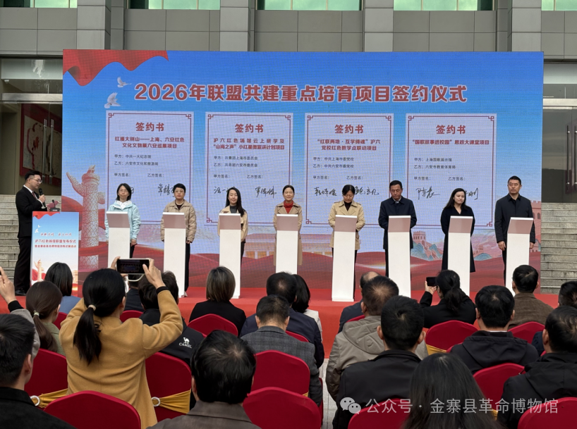 活动同步发布2026年度联盟共建4项重点培育项目,其中六安市文旅局与中共一大纪念馆现场签约“红漫大别山——上海、六安红色文化文物展”六安巡展项目,将其列为明年两地文旅合作核心内容。