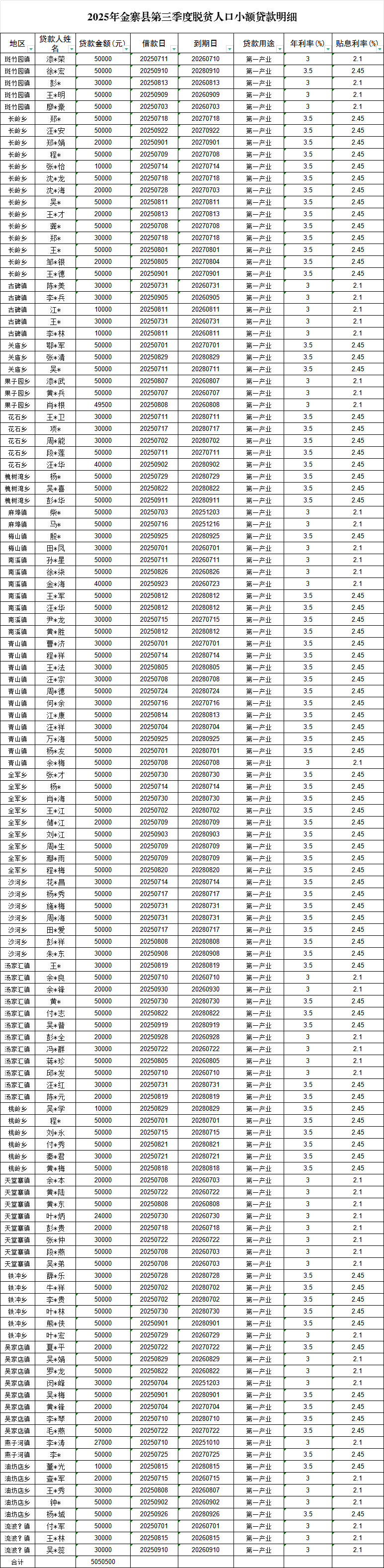 2025年第三季度金寨县脱贫人口小额贷款情况