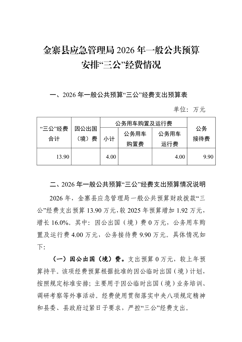 金寨县应急管理局2026年一般公共预算安排“三公”经费情况
