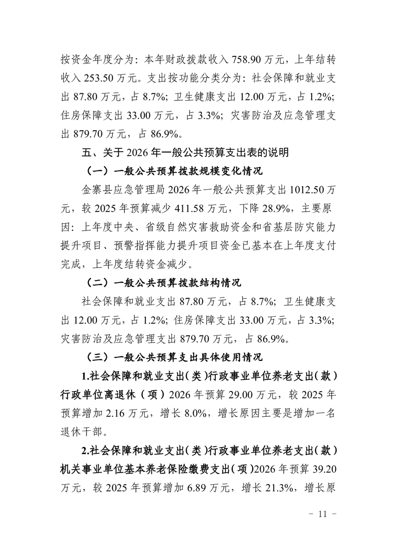 金寨县应急管理局2026年部门预算