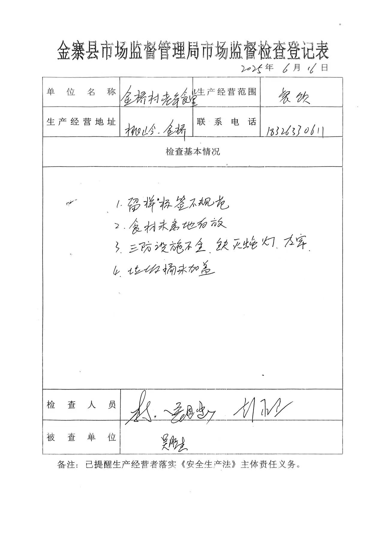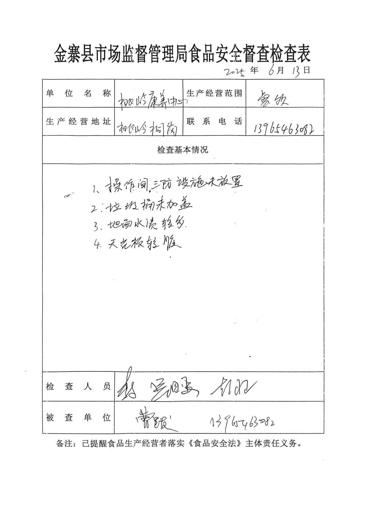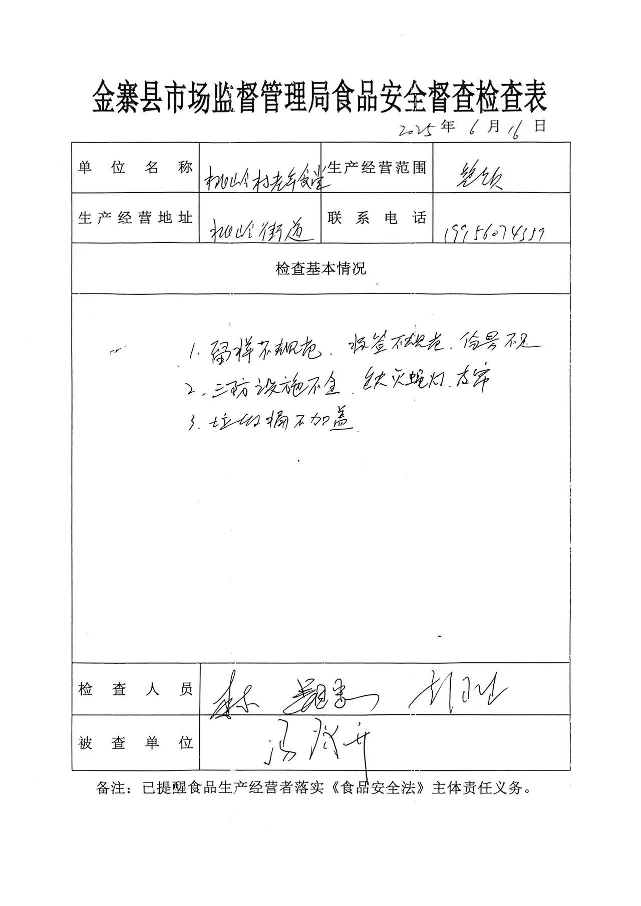 【结果】金寨县桃岭乡2025年第二次食品安全检查情况