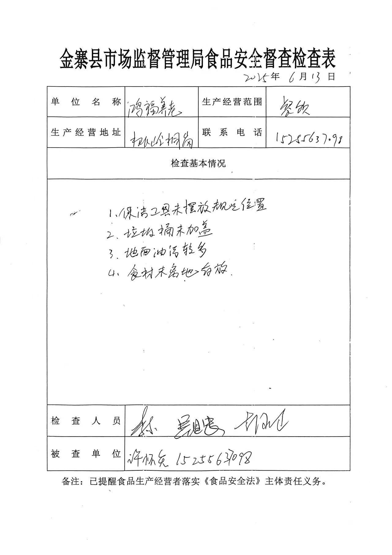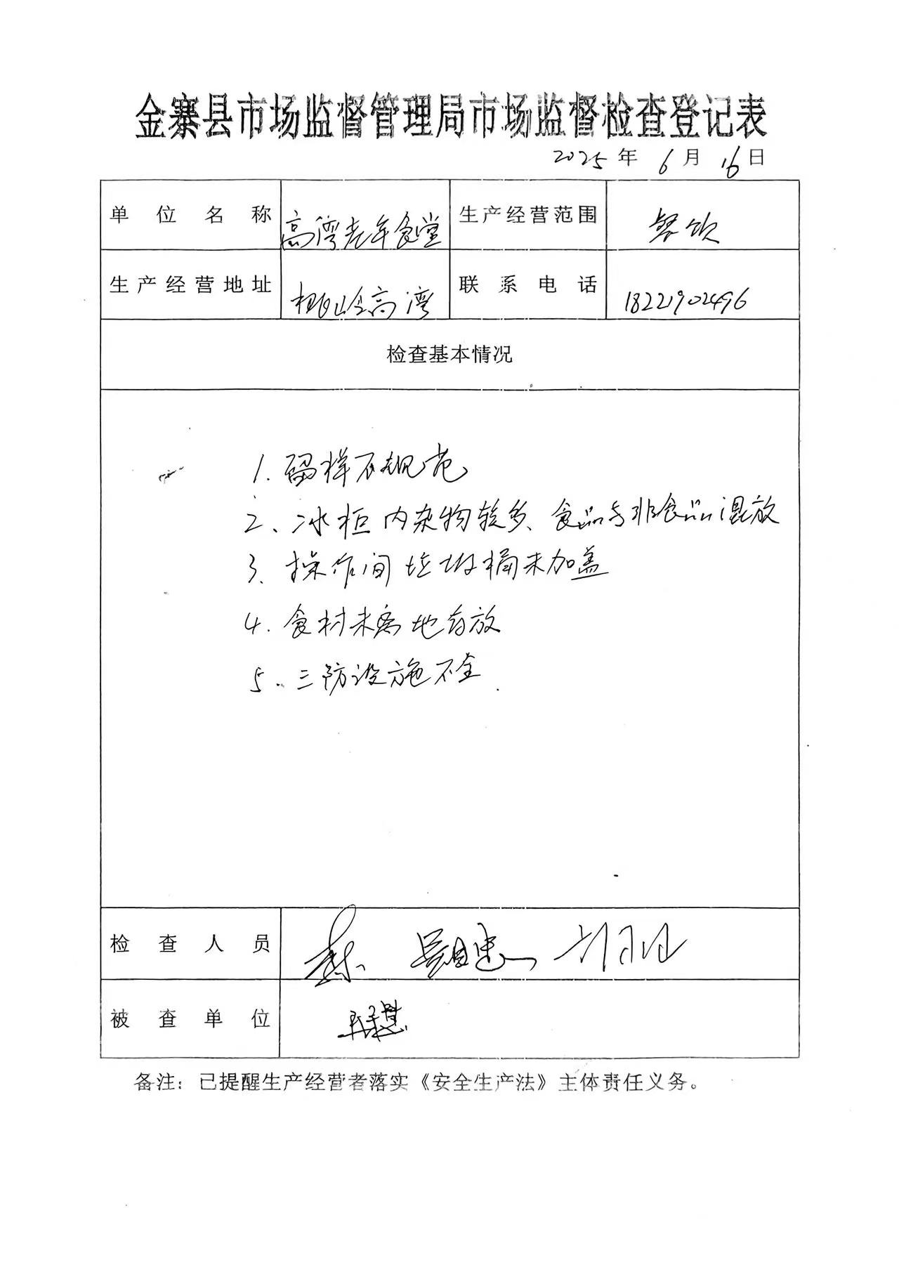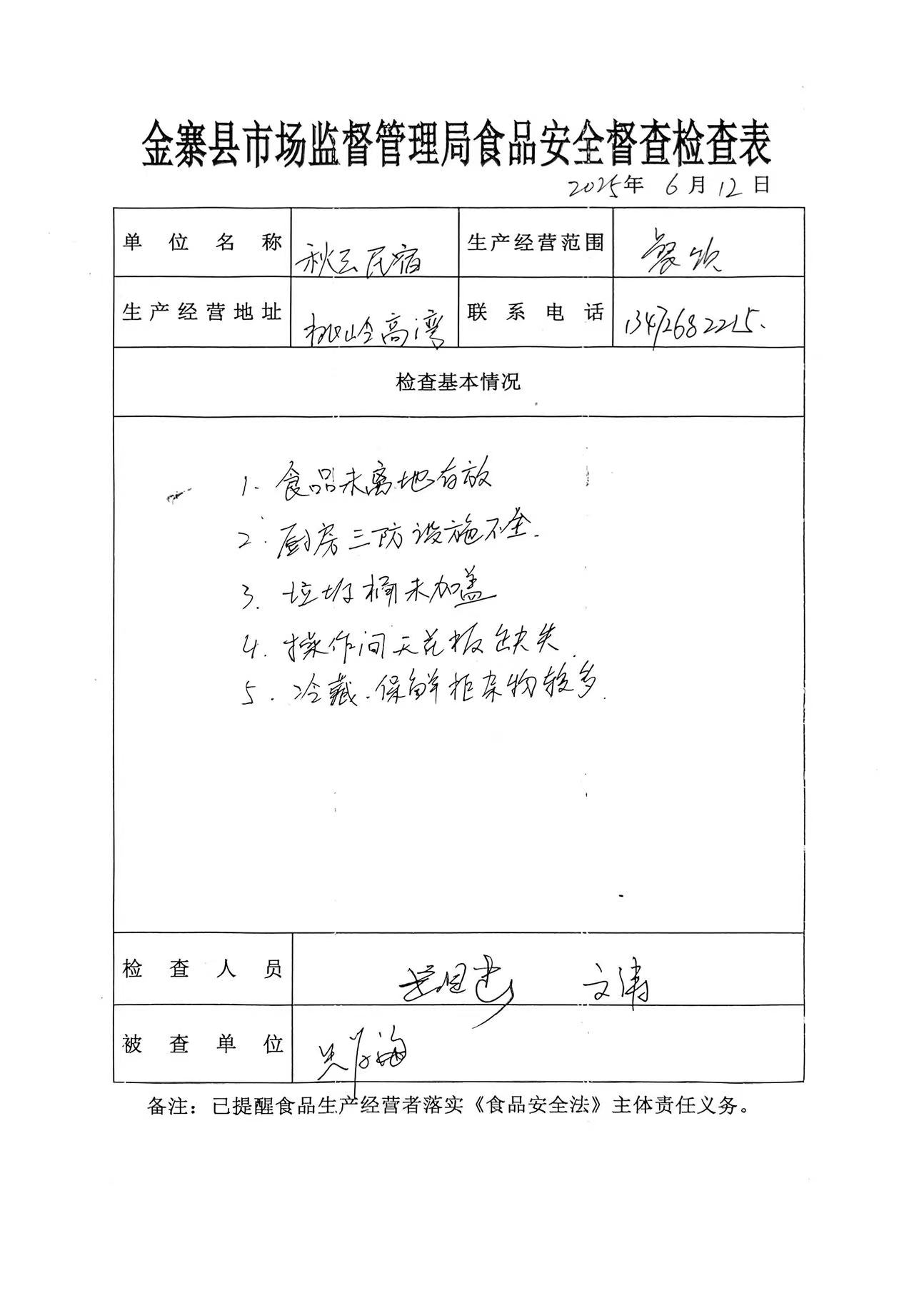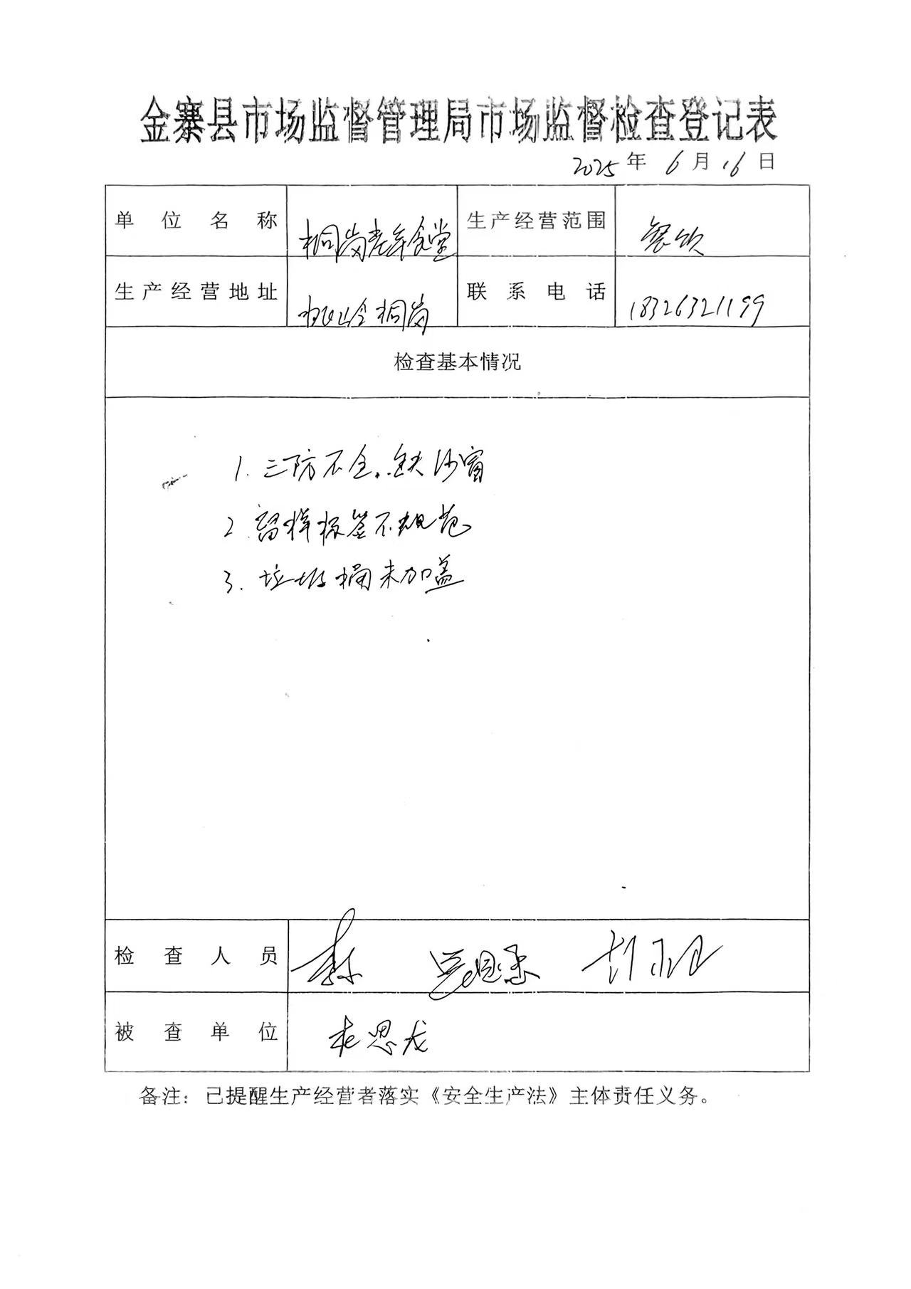 【结果】金寨县桃岭乡2025年第二次食品安全检查情况