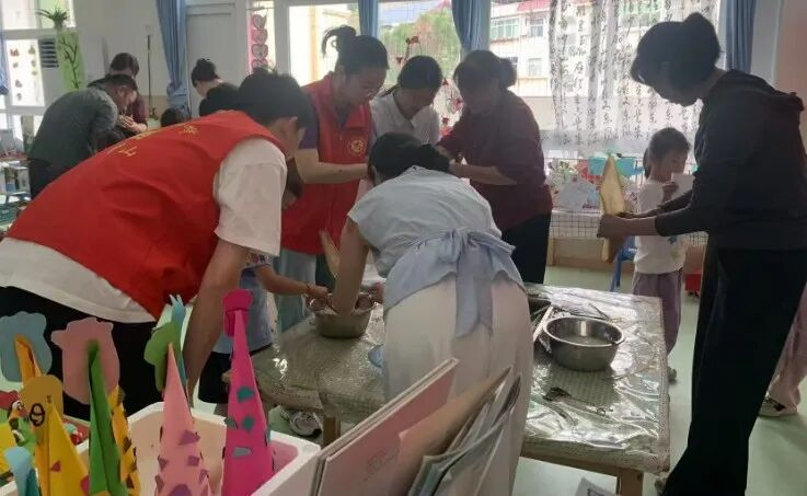 为传承千年端午文化,凝聚家国情怀共识,5月30日下午,金寨县青山镇新时代文明实践所在尧塘村老年食堂和镇中心幼儿园举办“我们的节日·端午”文明实践活动。通过包粽子、送关怀、传文化等形式,让“一老一小”群体感受端午传统民俗的魅力。在尧塘村老年食堂,新时代文明实践志愿者与独居老人围坐成温馨的“同心圆”,共包“暖心粽”。志愿者们提前备好了新鲜粽叶、糯米、红枣等食材,手把手教老人折叶、填馅、缠绳。66岁的张大爷眯眼模仿着,布满老茧的手小心翼翼地缠紧棉线,当粽子成型时,他捧着“作品”笑出满脸褶子:“往年自个在家包粽子冷清,今年跟大家说说笑笑,这粽香里都是人情味!”志愿者们还与老人拉家常,讲述端午习俗,为老年食堂增添了浓浓的节日温情。与此同时,青山镇中心幼儿园的活动室里正上演着童趣版端午课堂。“把薄荷、艾草、丁香一起装进袋子里,制作成香包,可以驱虫辟邪。”在活动室里,学校组织家长和幼儿一同入园,开展做香囊、包粽子、讲故事等系列活动。老师在课堂上讲授端午节吃粽子、划龙舟、带香囊的文化习俗,家长与孩子一起动手实践,让孩子体验感知传统文化的独特魅力和浓厚底蕴。此次活动以民俗为媒,搭建起跨年龄的文化传承平台,既让老人感受到社会关怀,也让儿童在沉浸式体验中筑牢传统文化根基,为新时代文明实践注入鲜活力量。