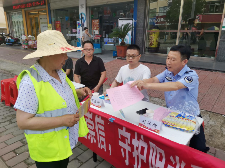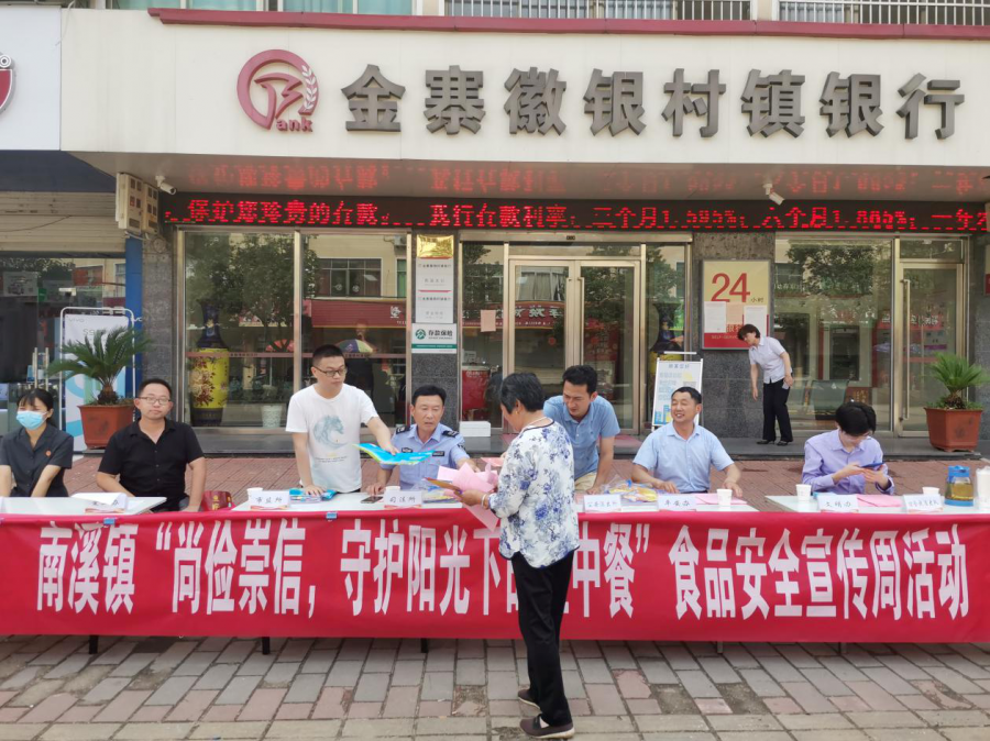 为动员全社会关心、支持、参与食品安全工作,增强全镇人民群众的食品安全意识,6月4日下午,南溪镇在辖区徽银村镇银行门前开展了以“尚俭崇信 守护阳光下的盘中餐”为主题的食品安全宣传周集中宣传活动,镇市场监督管理所、镇爱卫办、司法所、新时代文明实践所等相关单位参加了活动。