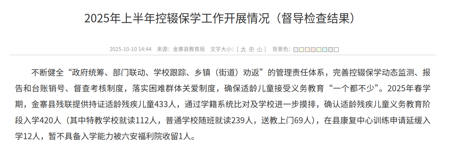 【督导结果】金寨县2025年控辍保学督导结果公告(仅县级督导,乡镇无)