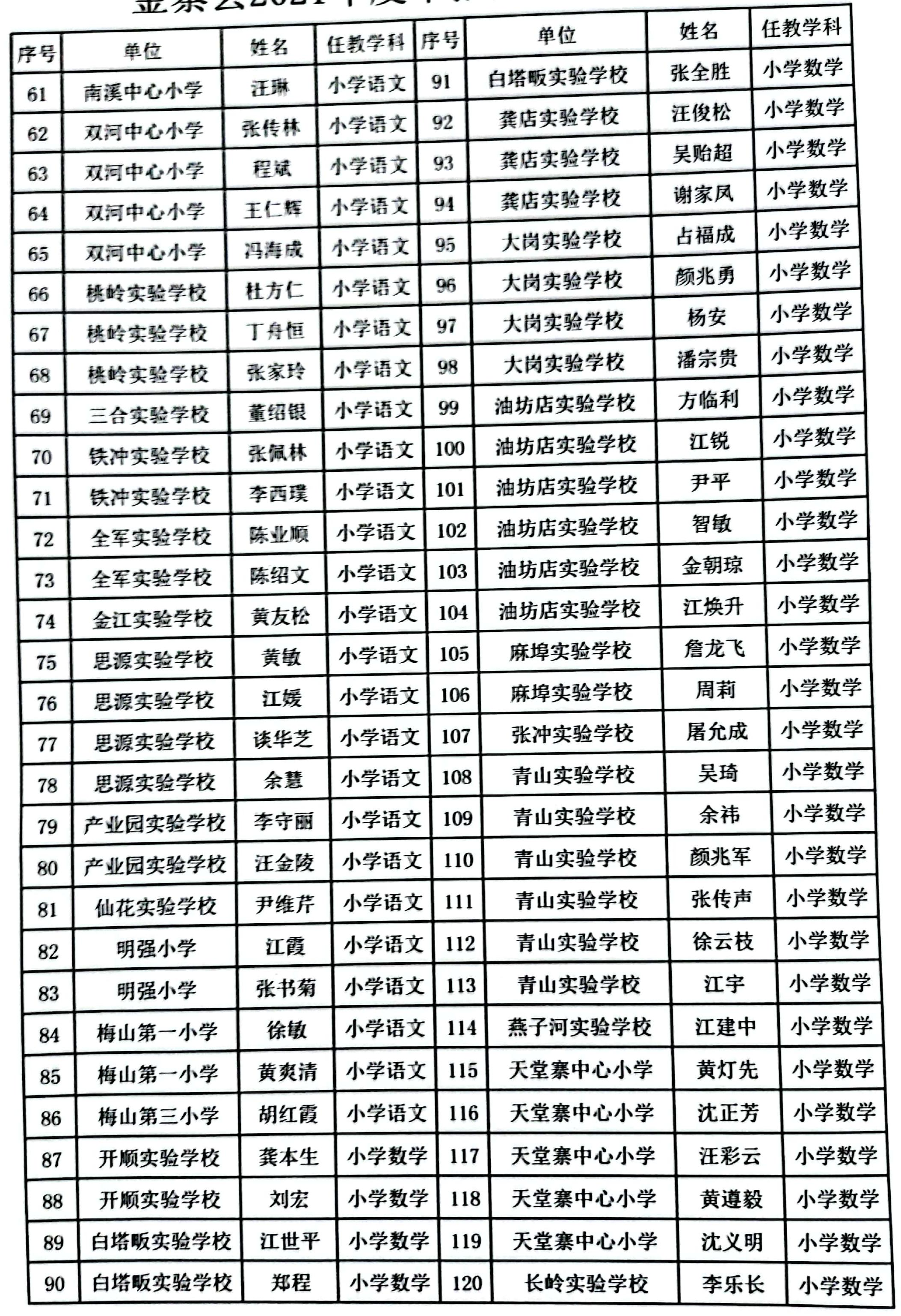 【最终结果】金寨县2021年教师职称评审最终结果名单(含燕子河镇)