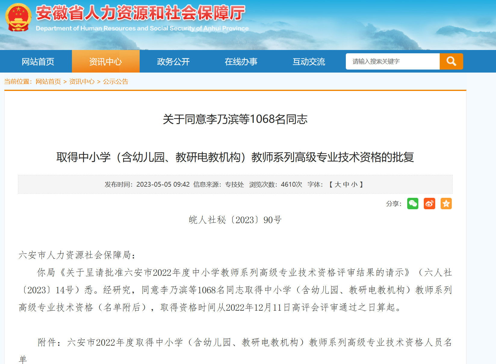 【2022年最终结果】关于同意李乃滨等1068名同志取得中小学(含幼儿园、教研电教机构)教师系列高级专业技术资格的批复