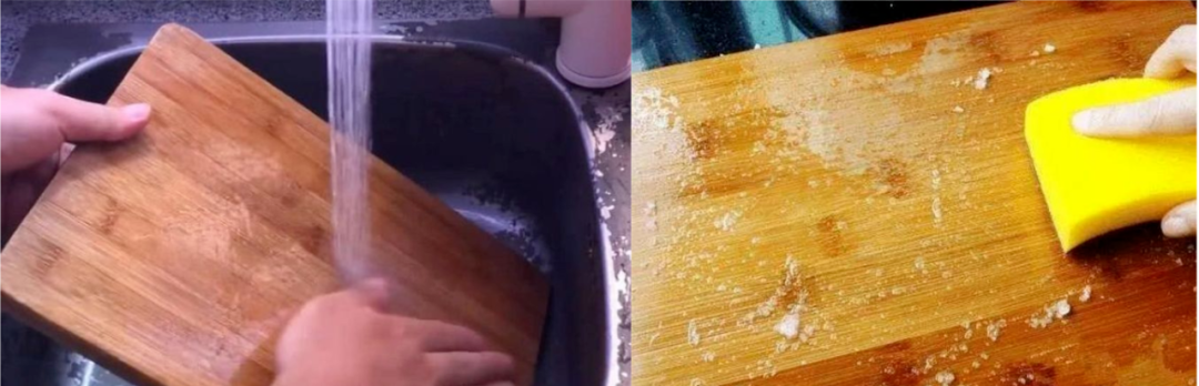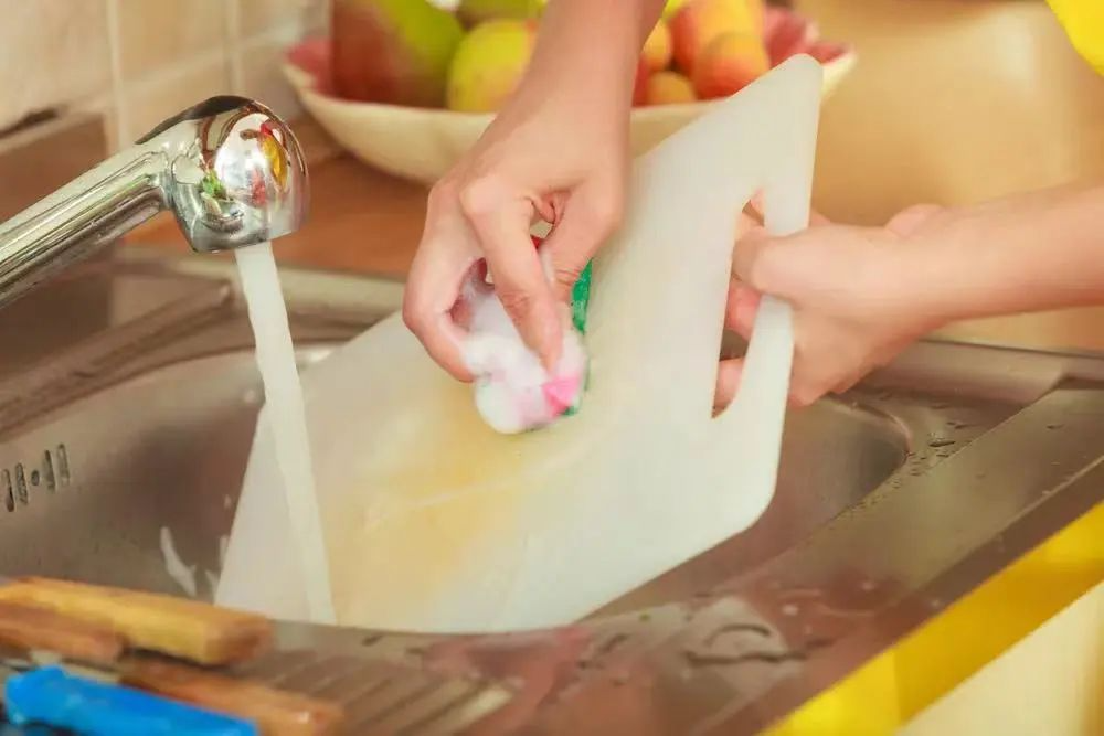 尽量不要用清洁剂清洗木制和竹制砧板,以防渗入其中,致使食材沾染串味,长期导致发霉。若砧板出现较大裂痕或呈现黑点时,应及时丢弃。