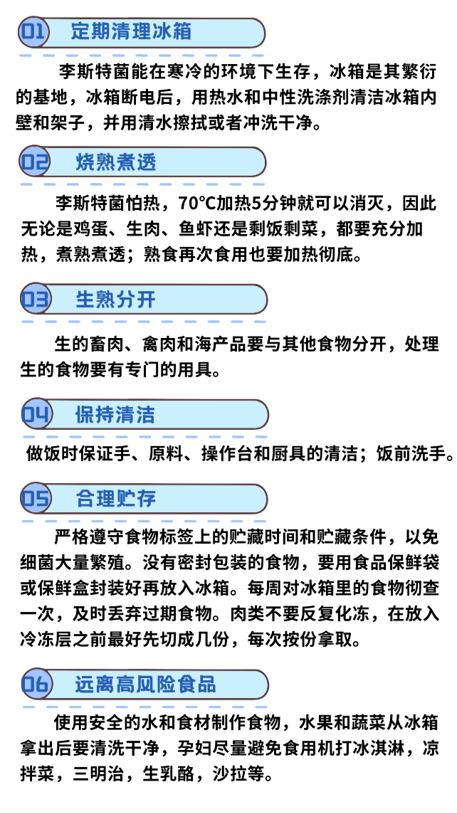 冰箱是储存食物的好地方,冰箱的冷藏温度通常在0°C到 4°C之间,可以阻止大部分食源性致病细菌的生长,但是,这样的温度对李斯特菌无效,它们能在低至-1.5°C的环境中生存和生长。