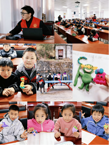 活动中,天堂寨镇团委组织的青年志愿者担任辅导老师,围绕手工彩泥创作和趣味阅读指导等主题展开教学。在手工课上,志愿者通过示范讲解、手把手指导,带领孩子们用彩泥捏制出青蛙、葡萄、卡通人物等生动形象的作品,充分激发了孩子们的想象力与动手能力;在阅读辅导环节,志愿者带领孩子们共读经典读物,分享阅读技巧,引导他们在书本中感受知识的魅力。此外,活动还设置了乒乓球趣味互动环节,让孩子们在运动中增强体质、增进友谊。