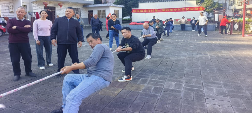 为丰富村民精神文化生活,凝聚乡村治理合力,助推和美乡村建设走深走实,近日,麻埠镇以 “趣味竞技展风采,邻里同心促和美” 为主题,在桂花村文化广场举办 “和美乡村” 农民运动会,运动会立足乡村实际与农民生产生活特点,精心设置“拔河争霸赛”“趣味套圈”等 8 个兼具竞技性与趣味性的项目。赛事既保留传统体育竞技元素,又融入农业生产场景,让村民在赛事中重温农耕记忆,展现新时代农民的精气神。