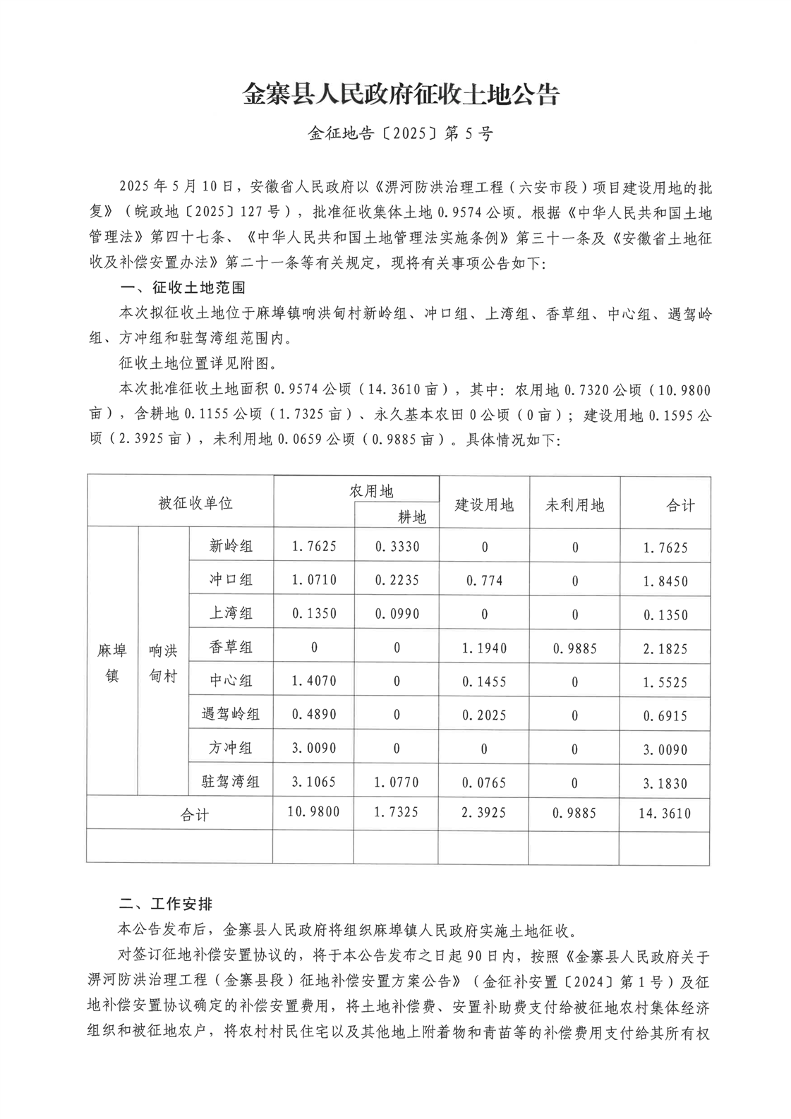 金寨县人民政府征收土地公告 金征地告〔2025〕第5号