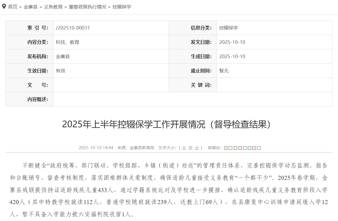 【督导结果】金寨县2025年控辍保学督导结果公告(仅县级督导,乡镇无职能)
