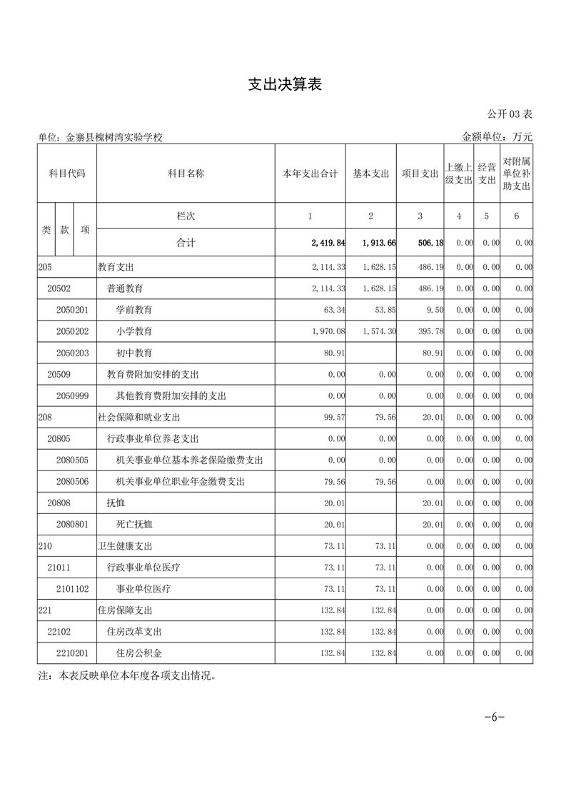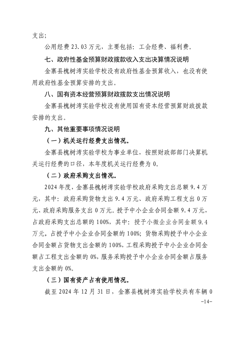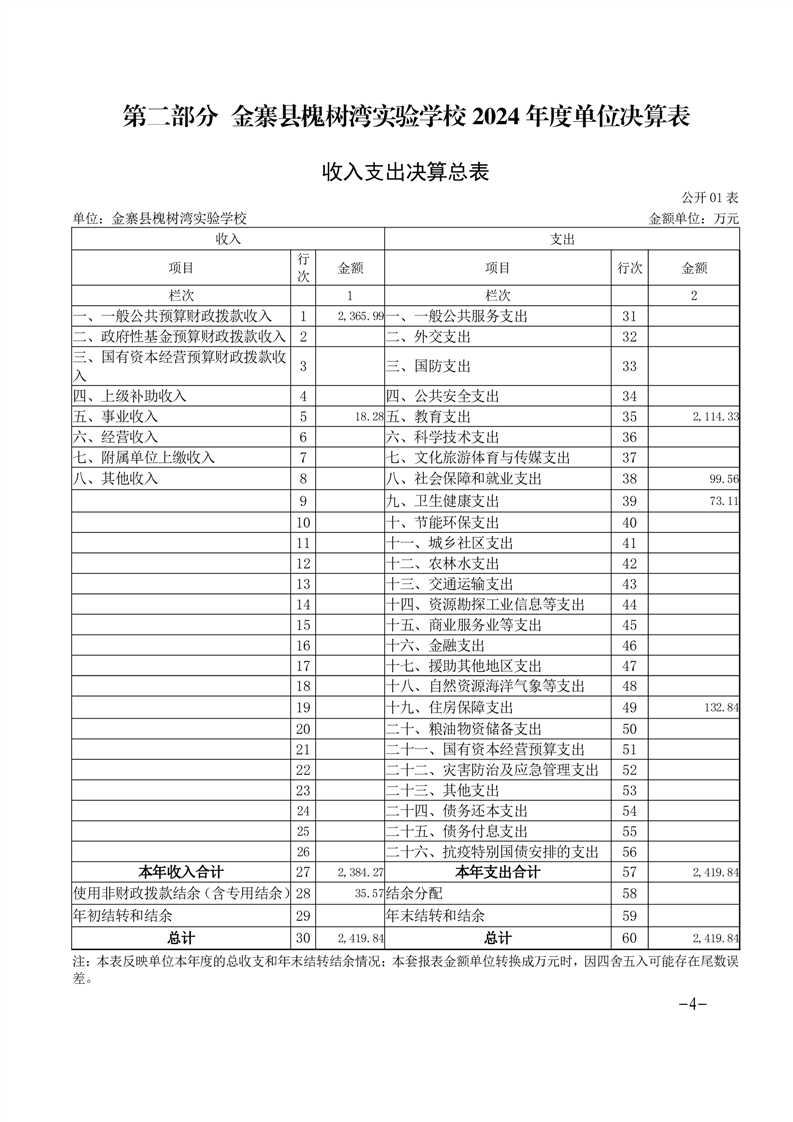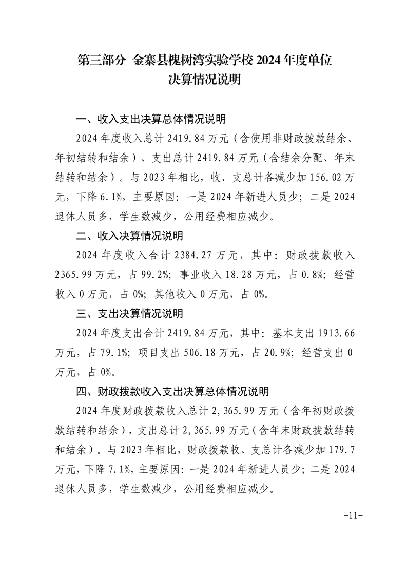 【年度决算】金寨县槐树湾实验学校2024年单位决算公开文本