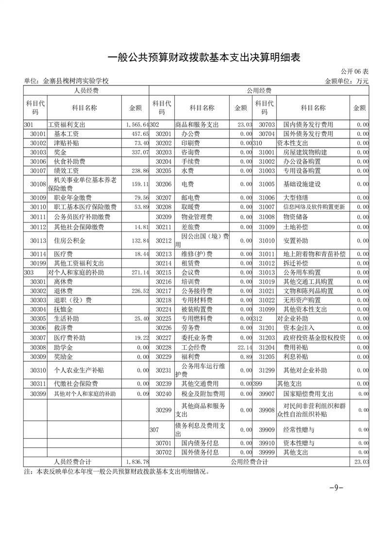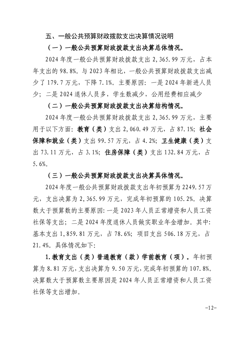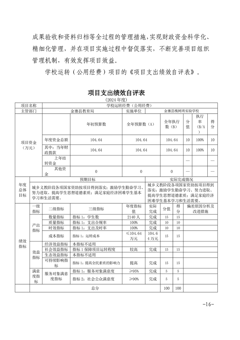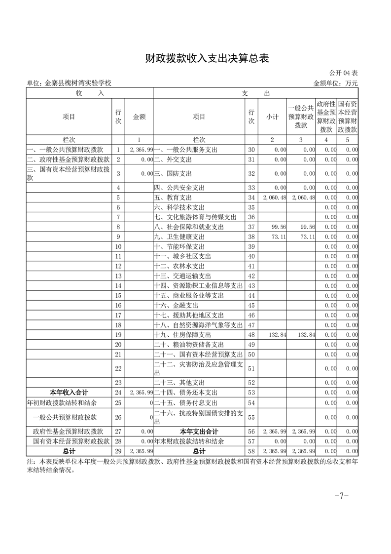 【年度决算】金寨县槐树湾实验学校2024年单位决算公开文本