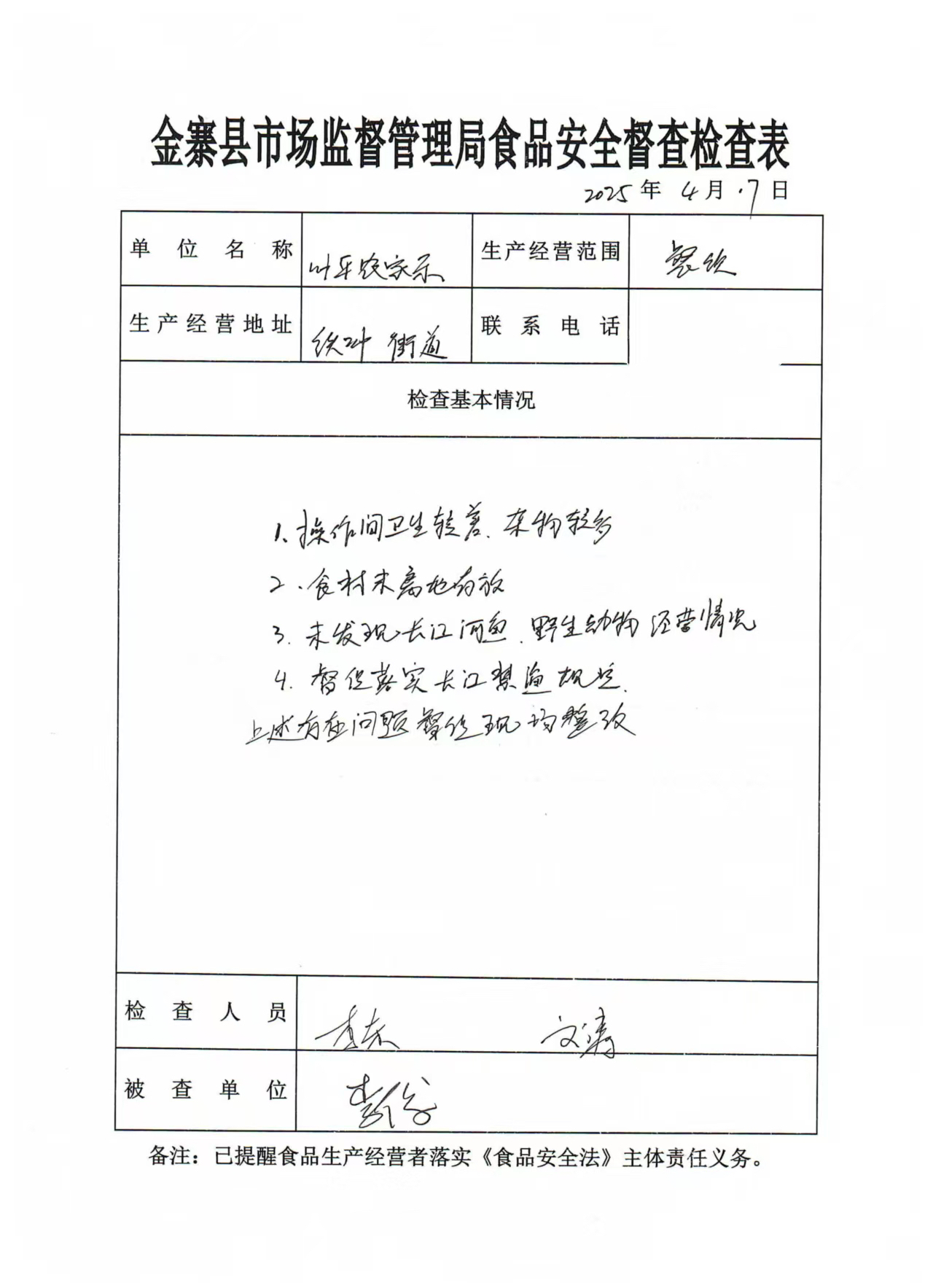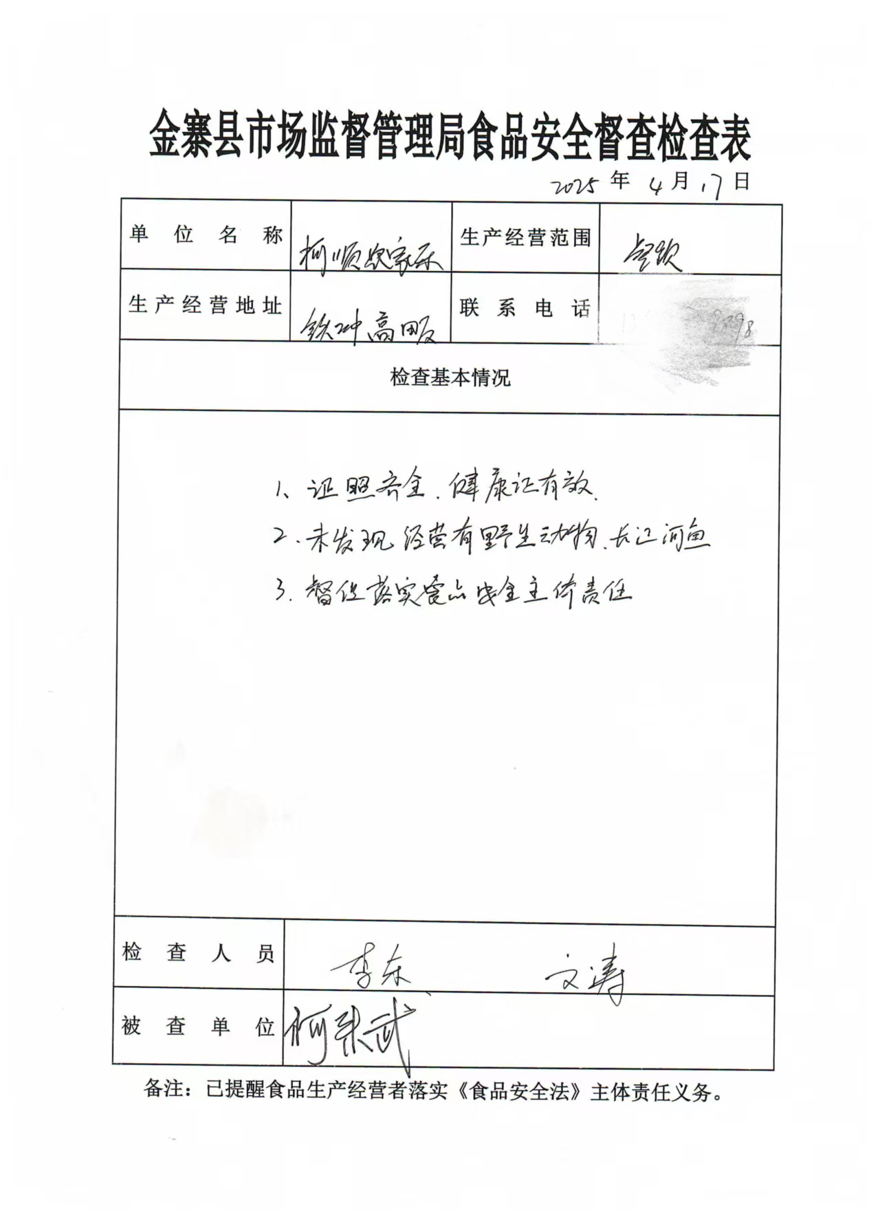 【结果】金寨县铁冲乡2025年第二季度食品生产经营监督检查结果
