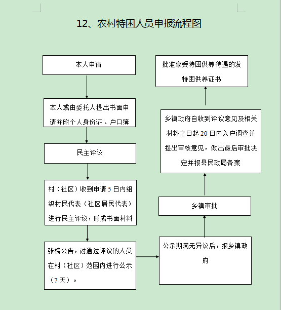 金寨县铁冲乡特困人员救助供养流程图