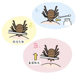 3.蜱虫处理规范:发现蜱虫叮咬时使用细尖镊子尽可能靠近皮肤表面夹住蜱虫口器保持稳定力度垂直向上拔出,用碘伏或75%酒精彻底消毒叮咬部位,同时密切观察自身健康状况。如无把握,应尽快前往医疗机构寻求专业处理。如出现发热、乏力等不适,应尽快就医。