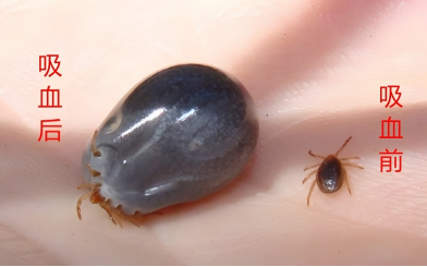 1.形态特征:蜱虫身体背腹扁平,未吸血时,体型细小如芝麻、米粒,不易被发现;吸饱血后,虫体迅速膨胀,可达到黄豆甚至蚕豆大小。