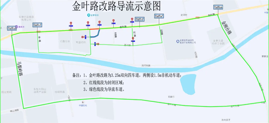 金叶路路段施工(安徽金安不锈钢铸造有限公司至北二路),封闭时间为2026年3月4日(正月十六)起至2026年9月10日止。