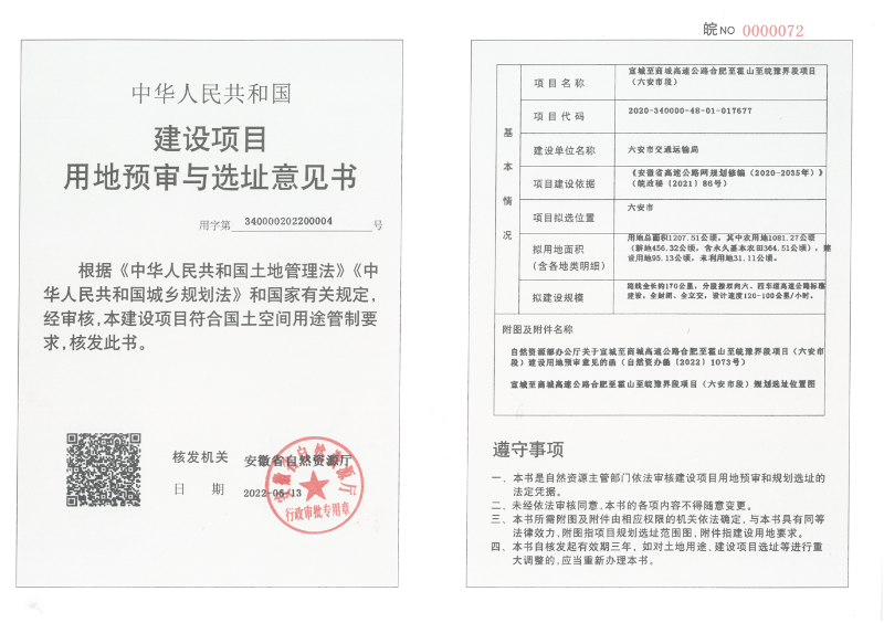 G4222和县至襄阳高速公路舒城(千人桥)至金寨(皖豫界)段项目(金寨县段)