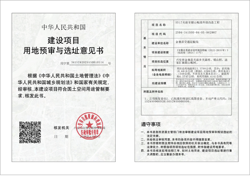 建设项目用地预审与选址意见书