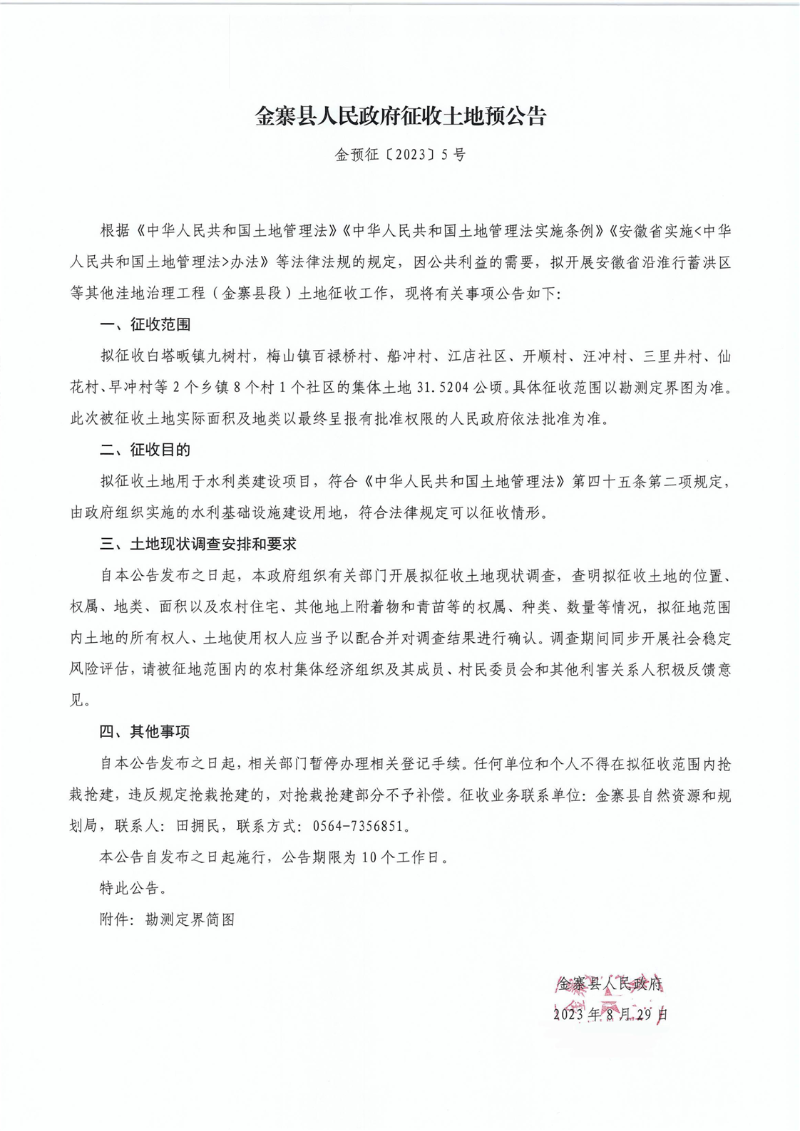 金寨县人民政府征收土地预公告(金预征〔2023〕5号)