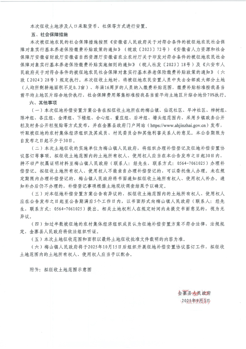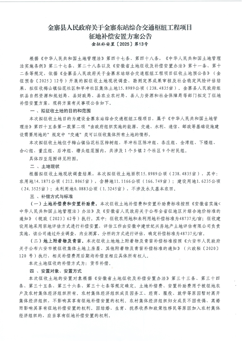 金寨县人民政府关于金寨东站综合交通枢纽工程项目征地补偿安置方案公告(金征补安置〔2025〕第13号)