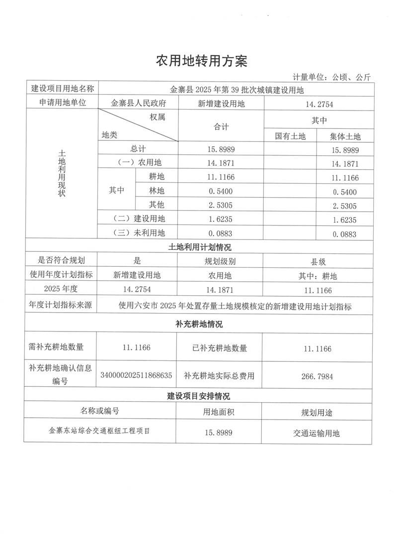 金寨东站综合交通枢纽工程项目农用地转用方案