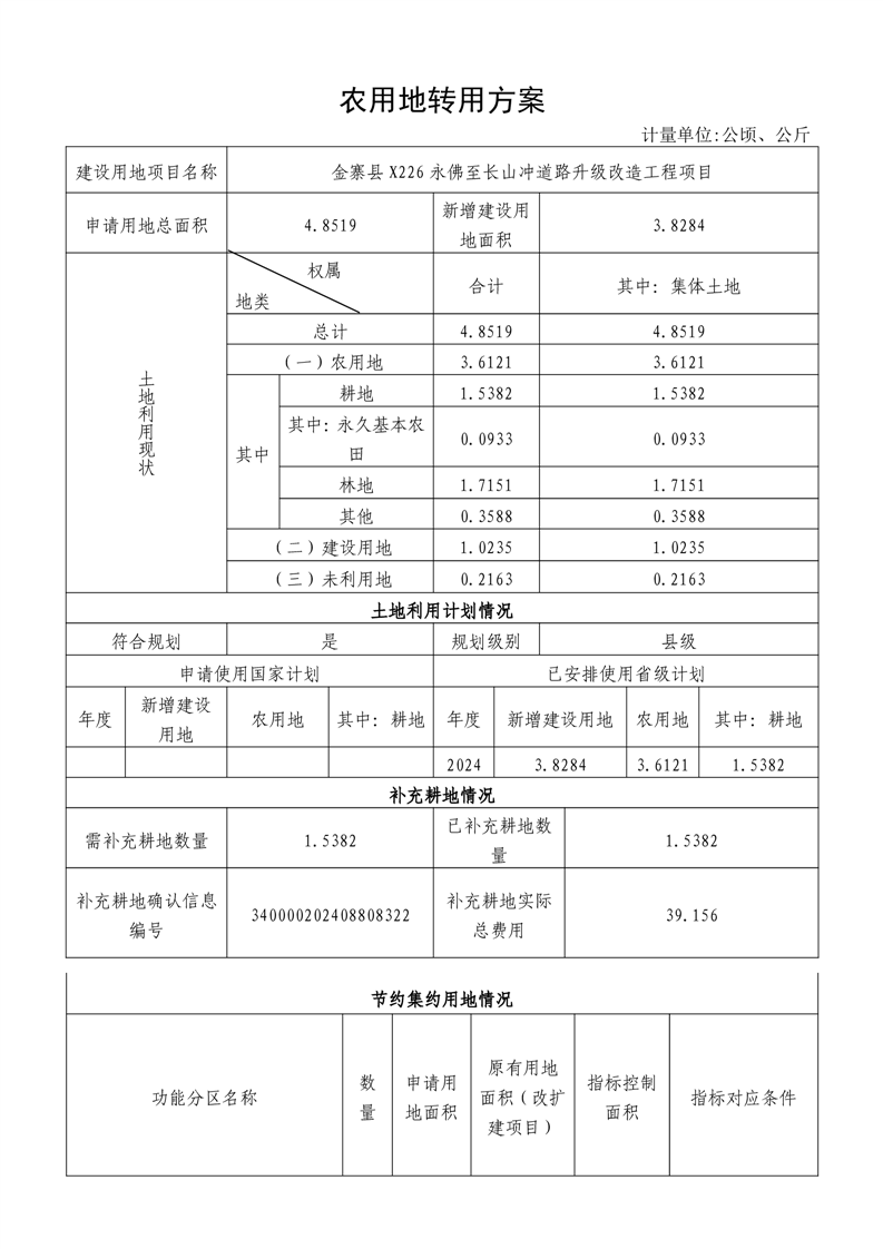 金寨县X226永佛至长山冲道路升级改造工程项目农用地转用方案