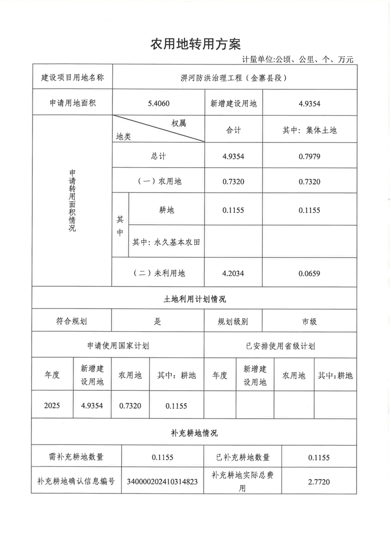 淠河防洪治理工程(金寨县段)农用地转用方案