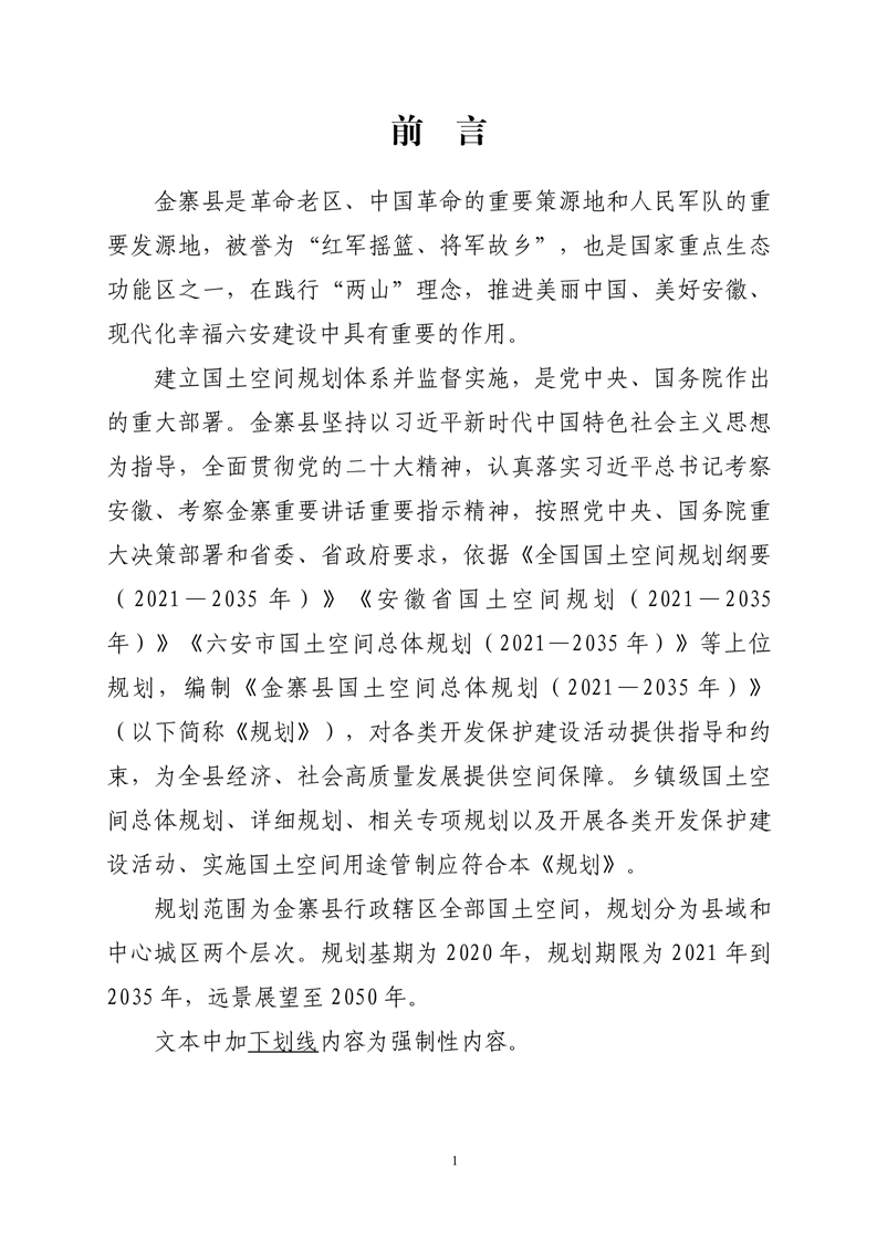 金寨县国土空间总体规划(2021—2035 年)